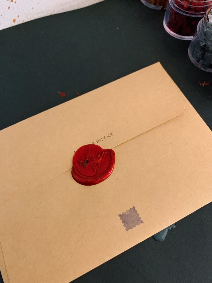 For just 3,000 won, you receive a “Letter Set,” which includes two beautiful postcards and an envelope. If you’d like to add a special touch, a wax seal can be added for 1,000 won extra. After writing your letter, you’ll head to the sealing station where you melt wax over a candle and imprint it with a stamp that reads the name of the café—A Space Filled With You. It’s a beautifully meditative process.
