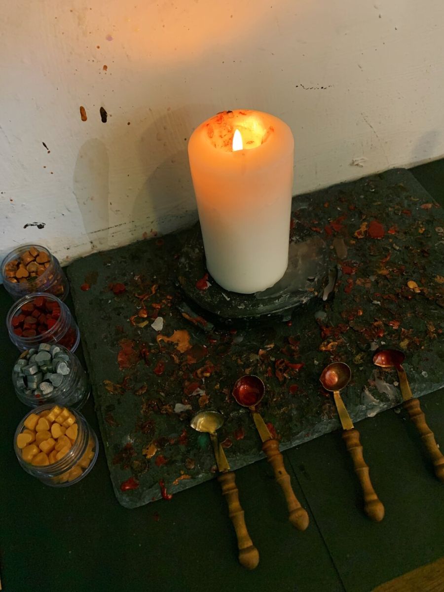 For just 3,000 won, you receive a “Letter Set,” which includes two beautiful postcards and an envelope. If you’d like to add a special touch, a wax seal can be added for 1,000 won extra. After writing your letter, you’ll head to the sealing station where you melt wax over a candle and imprint it with a stamp that reads the name of the café—A Space Filled With You. It’s a beautifully meditative process.